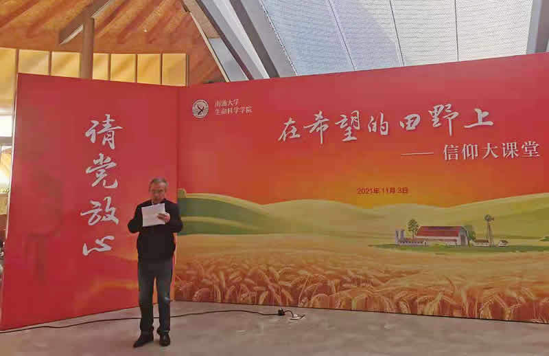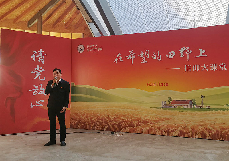 蒋辉明教授退休后仍然关心学校发展和大学生的培养,他结合自己个人的成长,与现场师生分享了建党百年的恢宏征程。在蒋教授的娓娓叙述中,大家再次感受了中国共产党“敢叫日月换新天”的豪情、“杀出一条血路”的气概和“踏石留印、抓铁有痕”的韧劲。南通市都市农业公园运营经理赵伦向大家推荐了这座集“三产融合示范区、农田景观体验区、智慧农业科教区、文旅休闲联动区”四大功能片区为一体的大型主题公园,也期待与生科院师生携手,共同为乡村振兴发展助力。学院青年教师赵祥强博士结合自己的教学科研分享了袁隆平院士筚路蓝缕的科研之路,赵博士用袁院士的一句话“人生就像一粒种子,要做好种子”与大家共勉,鼓励同学们心怀梦想,向阳而生,在生物专业的学习道路上结出金黄饱满的穗子。