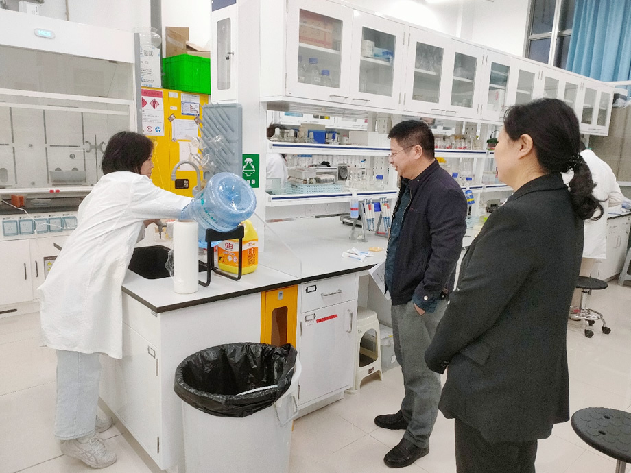 2024年11月7日下午,学院党委书记季凌燕,副院长张健,实验中心副主任周蓉一行对学院科研实验室、公共平台及教学实验室进行了安全工作全面检查。检查人员深入各个实验室,重点检查了仪器设备、化学试剂存放、卫生状况等方面问题,并对实验室相关安全管理工作提出了具体要求。