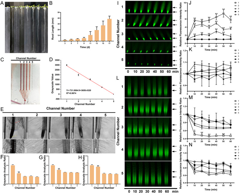 近日,永利23411集团孙利军教授团队在著名期刊《Plant, Cell & Environment》发表题为“A Newly Established Micro-Millifluidic Chip for Real-Time Monitoring of Arabidopsis Root Responses to Salinity Stress”的简要通讯类文章,报道了一种新型微毫流控芯片的开发及其在拟南芥根系对盐胁迫响应监测中的应用。团队精心设计了一种用于研究拟南芥根系的集成微毫流控芯片,其微流控部分能够输送并维持培养溶液的精准控制,而毫流控部分则为根系生长提供了充足的生长空间。利用该芯片可实时监测根冠的脱落、根毛生长和侧根形成的动态过程。论文还探究了不同盐浓度胁迫条件下,根系对盐胁迫的响应以及生长素(DR5::GFP)的分布和极性运输(Pin2::GFP)的改变,与传统的研究方法相比,团队构建的新型微毫流控根芯片不仅为根系的长期生长提供更多空间,而且实现了培养溶液浓度梯度的精确生成和控制,为植物根系微形态和生理反应的高时空分辨监测提供了全新的研究策略。