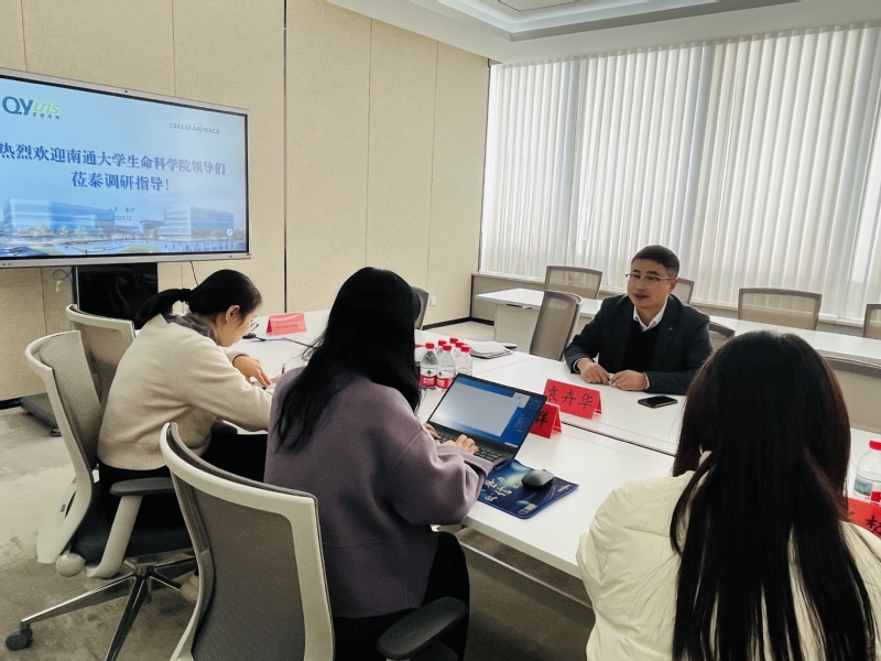 随后,学院一行走访了江苏荃信生物医药股份有限公司。洽谈中,袁卉华重点介绍了在研究生联合培养基地、本科生实习实践基地建设以及产业教授申报等方面的合作构想与政策支持。荃信生物人力总监程群对此表现出浓厚兴趣,并详细介绍了企业在抗体药物产品开发、医药剂量选型等领域的核心技术能力与生产实践条件。公司明确表示,非常愿意积极参与校企联合培养基地的申报与建设,依托自身在抗体药物研发全链条的实践经验,为相关专业学生的培养提供扎实的实践平台与项目指导,共同培育符合产业急需的高素质应用型人才。
