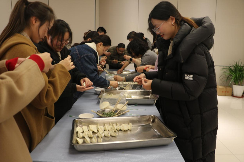 颁奖环节圆满落幕,包饺子活动接续登场。伴随着悠扬的迎春序曲,老师们围坐一桌、默契协作,纷纷投身其中。指尖流转间,一个个形态各异、饱满可爱的饺子渐渐堆满餐盘,欢声笑语在大厅里回荡,将冬日的寒意驱散殆尽。这场烟火气十足的互动,让同事间的情谊在协作中愈发深厚,为学院注入了浓浓的温情与凝聚力。